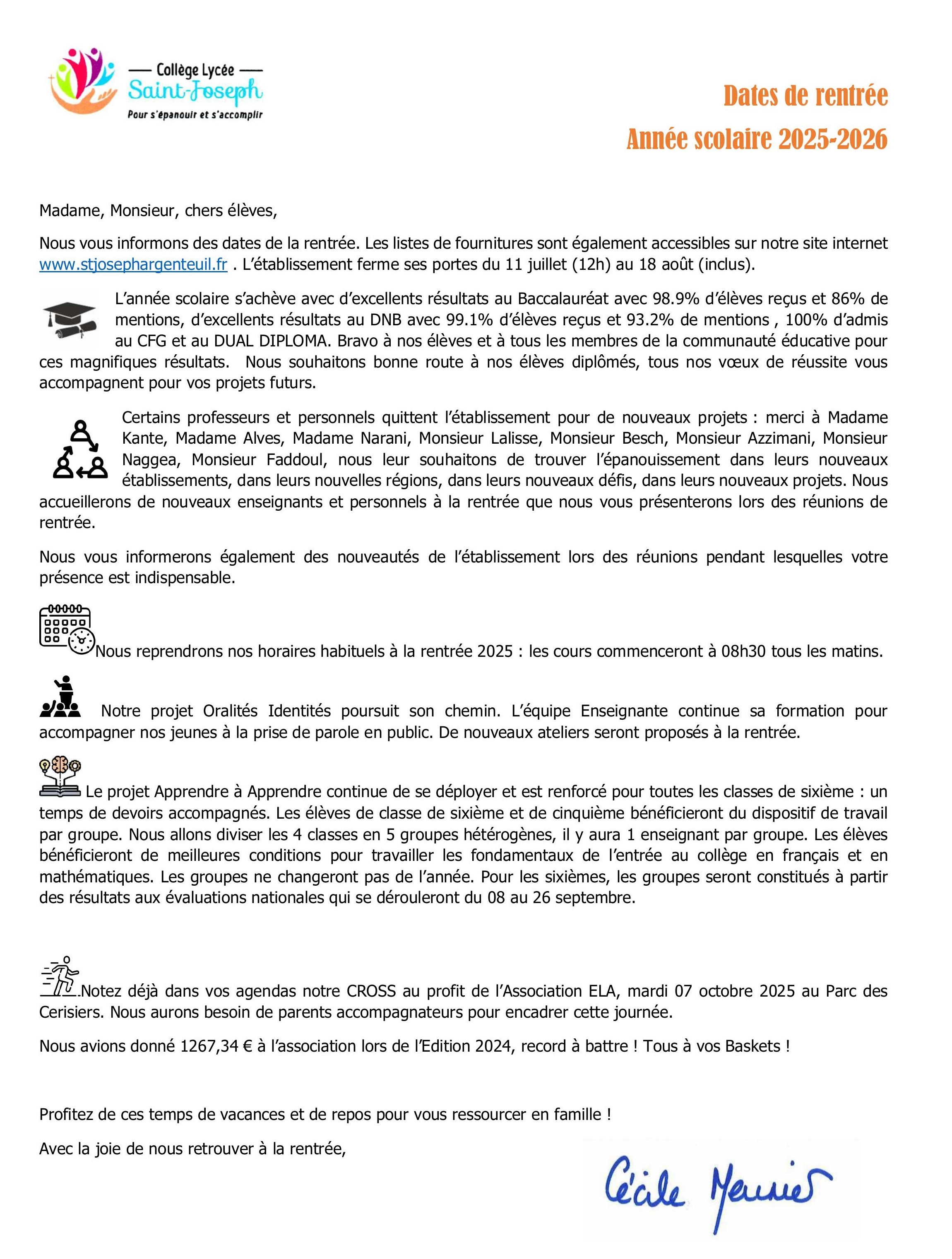 Au plaisir de vous accueillir au Collège-Lycée Saint-Joseph d’Argenteuil !